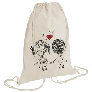 Sports backpack with dimensions 28x40cm. The drawstrings can be pulled to close the bag and then used as shoulder straps for carrying the bag.
