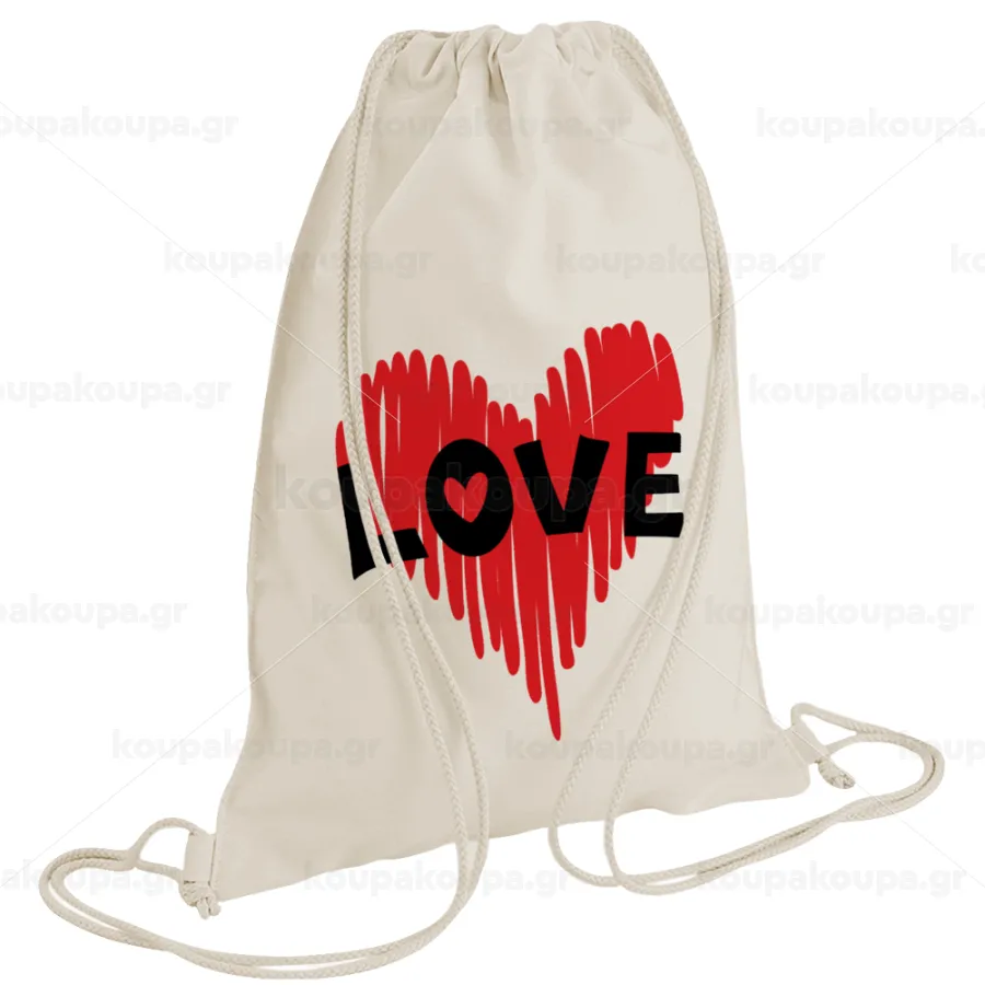 I Love You red heart, Backpack bag GYMBAG natural (28x40cm)