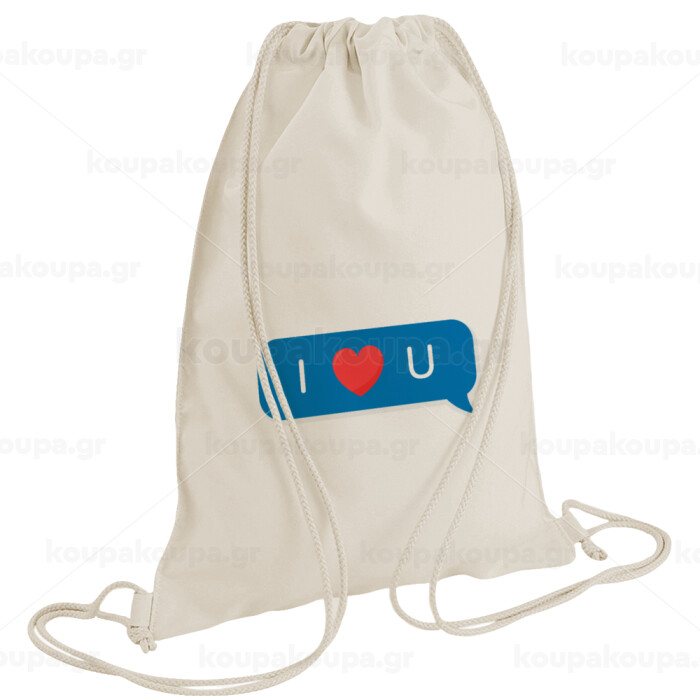 I Love You text message, Backpack bag GYMBAG natural (28x40cm)
