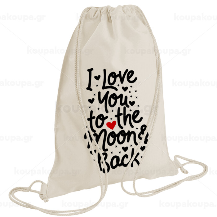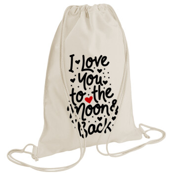 I love you to the moon and back with hearts, Backpack bag GYMBAG natural (28x40cm)