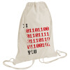 I .... YOU, binary secret MSG, Backpack bag GYMBAG natural (28x40cm)