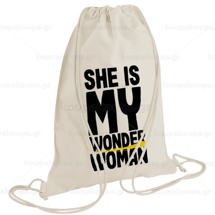 She is my wonder woman, Backpack bag GYMBAG natural (28x40cm)