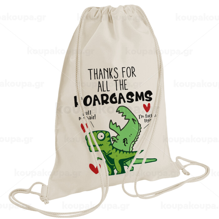 Thanks for all the ROARGASMS, Backpack bag GYMBAG natural (28x40cm)