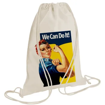 Rosie we can do it!, Backpack bag GYMBAG natural (28x40cm)