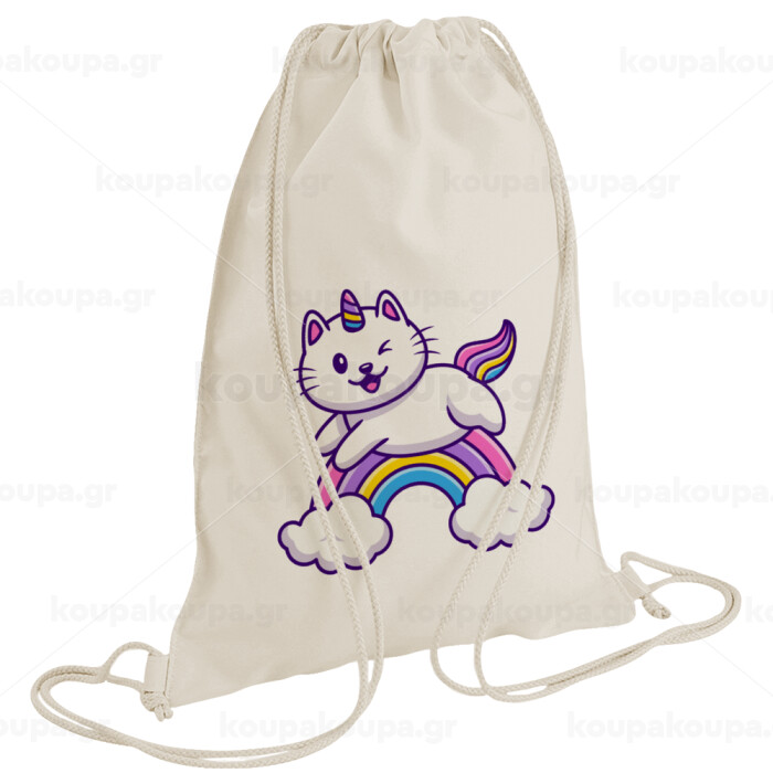 Cute cat unicorn, Backpack bag GYMBAG natural (28x40cm)