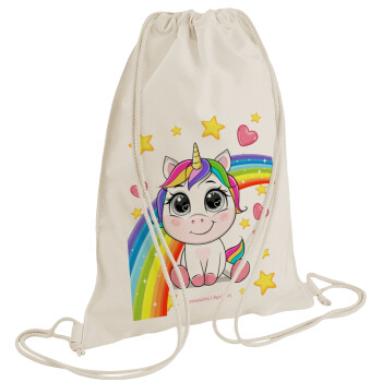 Unicorn baby με όνομα, Backpack bag GYMBAG natural (28x40cm)