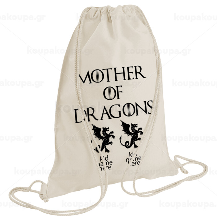 GOT, Mother of Dragons (με ονόματα παιδικά), Backpack bag GYMBAG natural (28x40cm)
