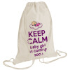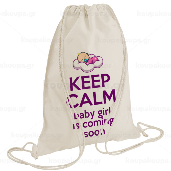 KEEP CALM baby girl is coming soon!!!, Backpack bag GYMBAG natural (28x40cm)