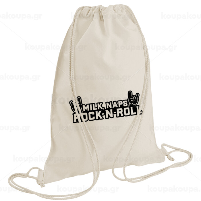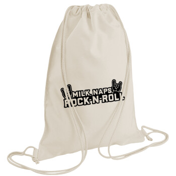Milk, Naps, Rock N Roll, Backpack bag GYMBAG natural (28x40cm)