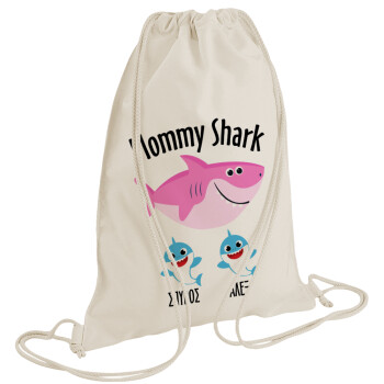 Mommy Shark (με ονόματα παιδικά), Backpack bag GYMBAG natural (28x40cm)