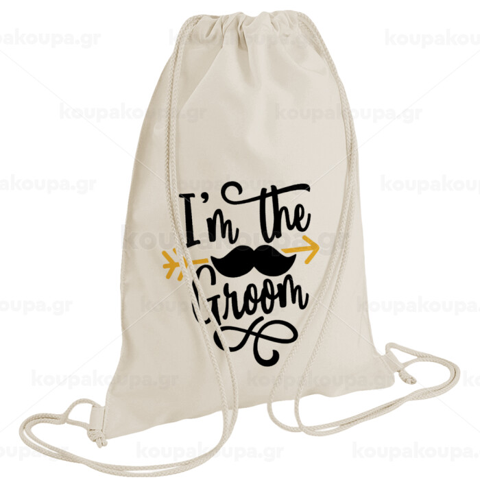I'm the groom mustache, Backpack bag GYMBAG natural (28x40cm)