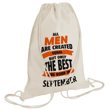 All men are created equal but only the best are born in September, Backpack bag GYMBAG natural (28x40cm)