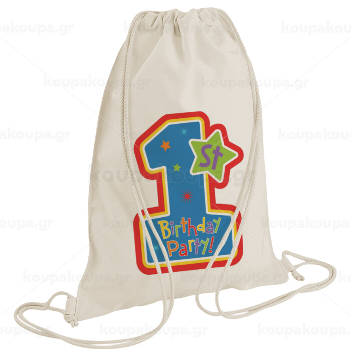 Happy 1st Birthday, Backpack bag GYMBAG natural (28x40cm)