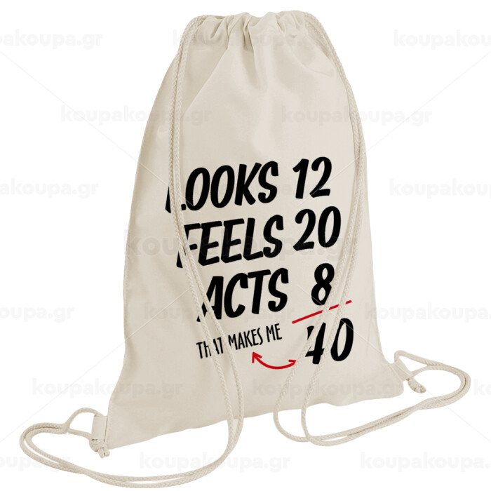 Looks, feels, acts LIKE your AGE, Backpack bag GYMBAG natural (28x40cm)