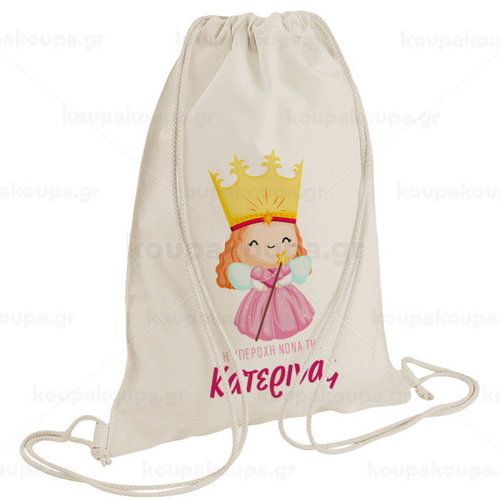 Η νονά μου, πριγκίπισσα, Backpack bag GYMBAG natural (28x40cm)