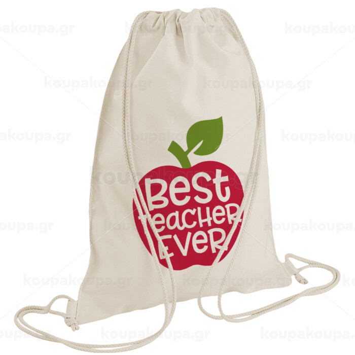 best teacher ever, apple!, Backpack bag GYMBAG natural (28x40cm)