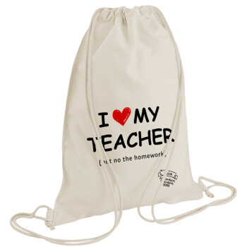 i love my teacher but no the homework, Backpack bag GYMBAG natural (28x40cm)