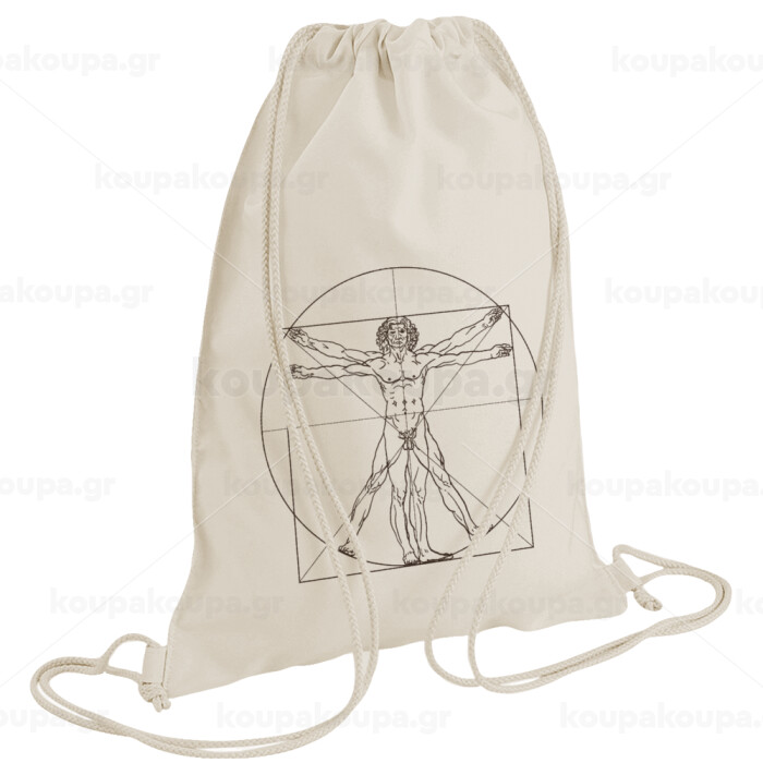 Leonardo da vinci Vitruvian Man, Backpack bag GYMBAG natural (28x40cm)