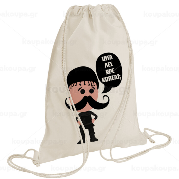 Κρητικός "Ίντα λες ωρέ κοπέλι", Backpack bag GYMBAG natural (28x40cm)