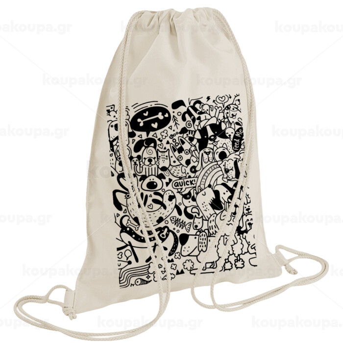 DOG pattern, Backpack bag GYMBAG natural (28x40cm)