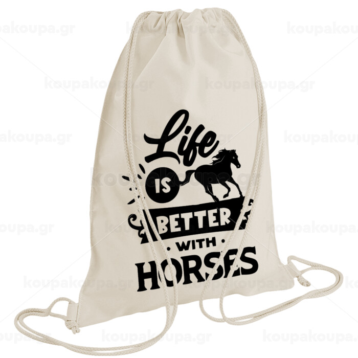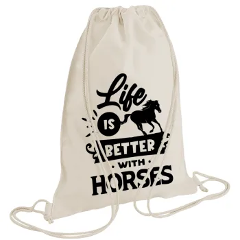 Life is Better with a Horses, Backpack bag GYMBAG natural (28x40cm)