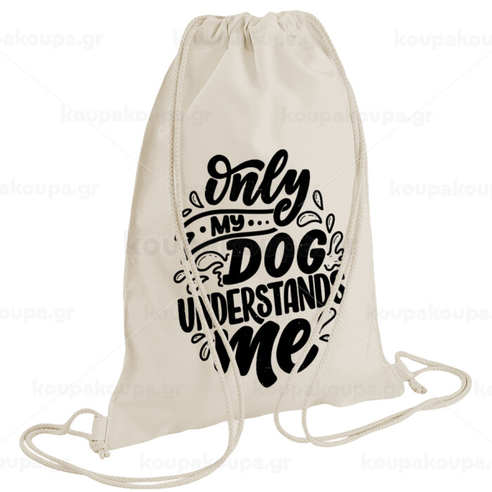 Only my DOG, understands me, Backpack bag GYMBAG natural (28x40cm)