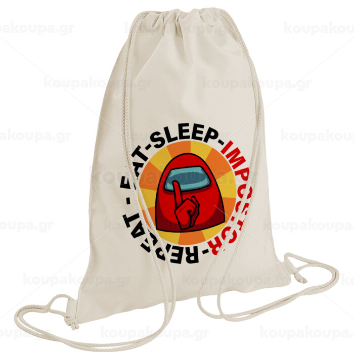 Among US Eat Sleep Repeat Impostor, Backpack bag GYMBAG natural (28x40cm)