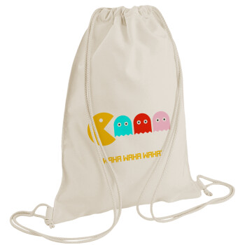 Pacman waka waka waka, Backpack bag GYMBAG natural (28x40cm)