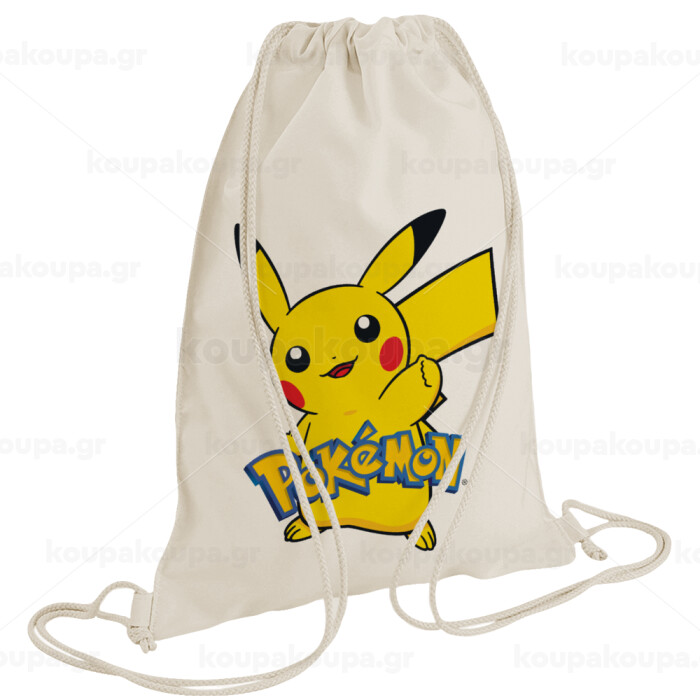 Pokemon pikachu, Backpack bag GYMBAG natural (28x40cm)