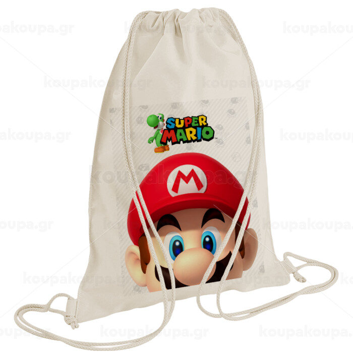 Super mario, Backpack bag GYMBAG natural (28x40cm)