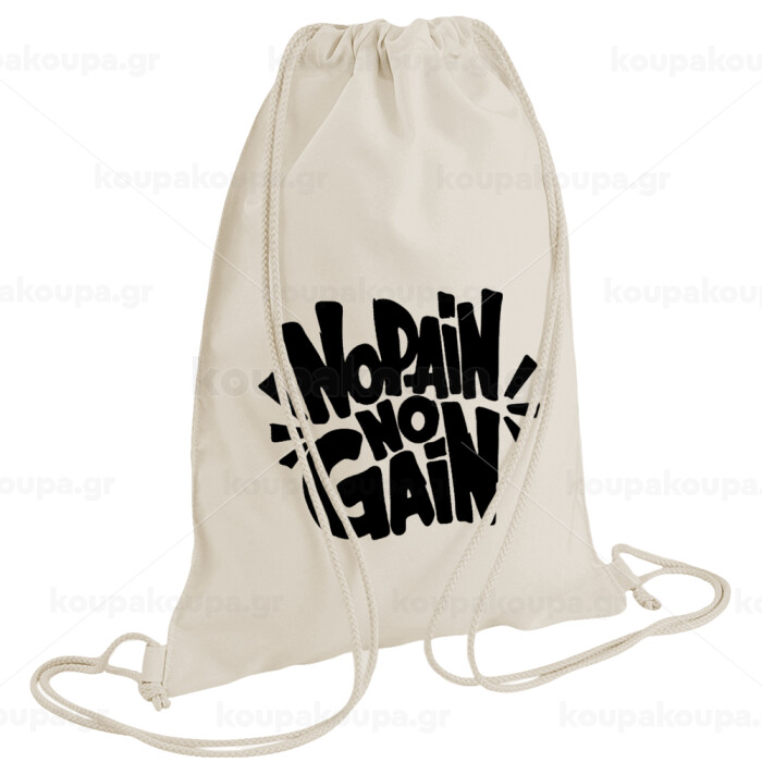 No pain no gain, Backpack bag GYMBAG natural (28x40cm)