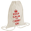 KEEP CALM  and carry on, Backpack bag GYMBAG natural (28x40cm)