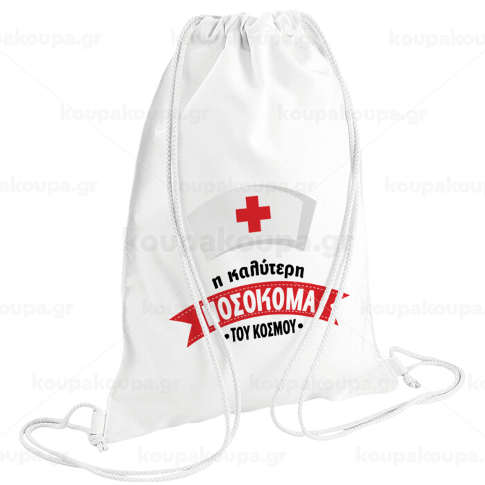Η καλύτερη νοσοκόμα του κόσμου!!!, Backpack pouch GYMBAG white (28x40cm)