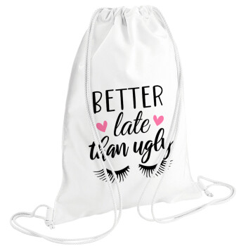 Better Late than ugly hearts, Backpack pouch GYMBAG white (28x40cm)