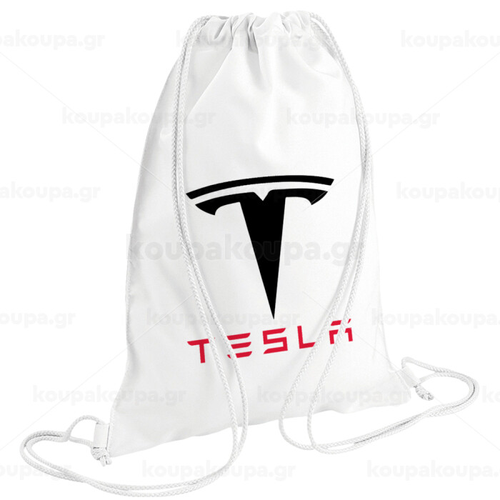 Tesla motors, Backpack pouch GYMBAG white (28x40cm)