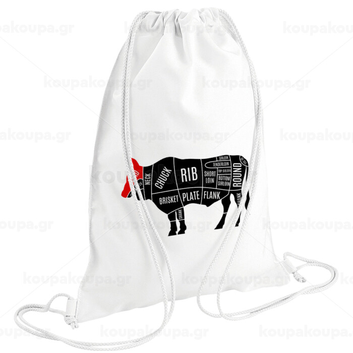 Diagrams for butcher shop, Backpack pouch GYMBAG white (28x40cm)