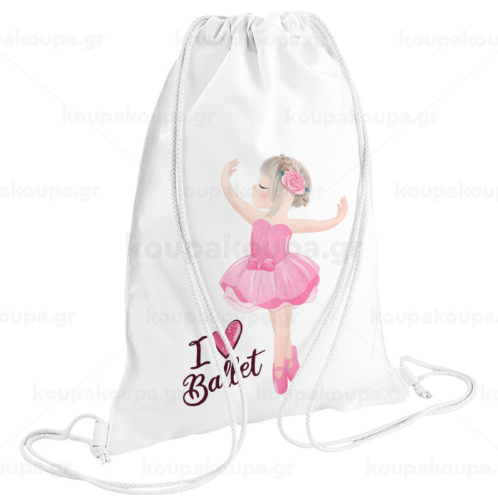 I Love Ballet, Backpack pouch GYMBAG white (28x40cm)