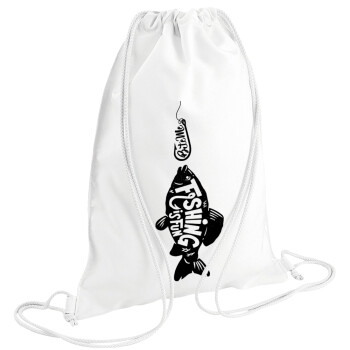 Fishing is fun, Backpack pouch GYMBAG white (28x40cm)