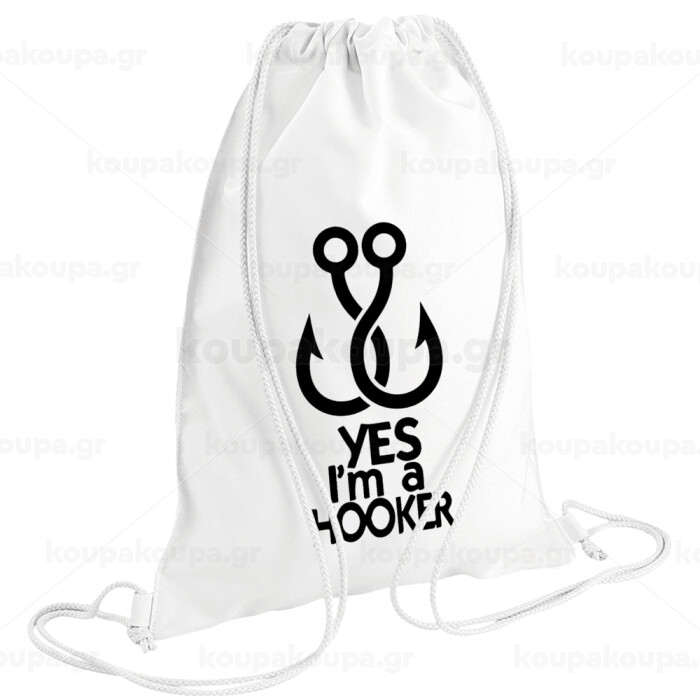 Yes i am Hooker, Backpack pouch GYMBAG white (28x40cm)