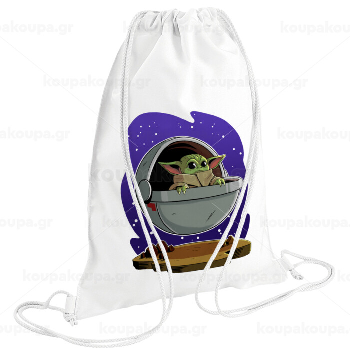 Baby Yoda mandalorian, Backpack pouch GYMBAG white (28x40cm)