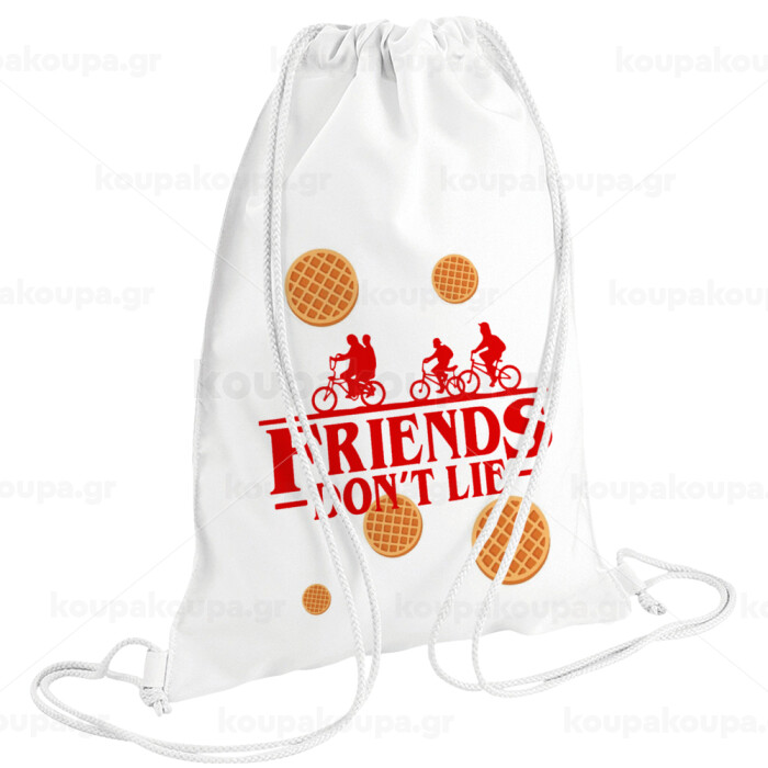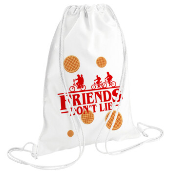 Friends Don't Lie, Stranger Things, Backpack pouch GYMBAG white (28x40cm)