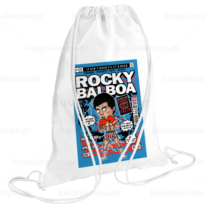 Rocky Balboa, Backpack pouch GYMBAG white (28x40cm)