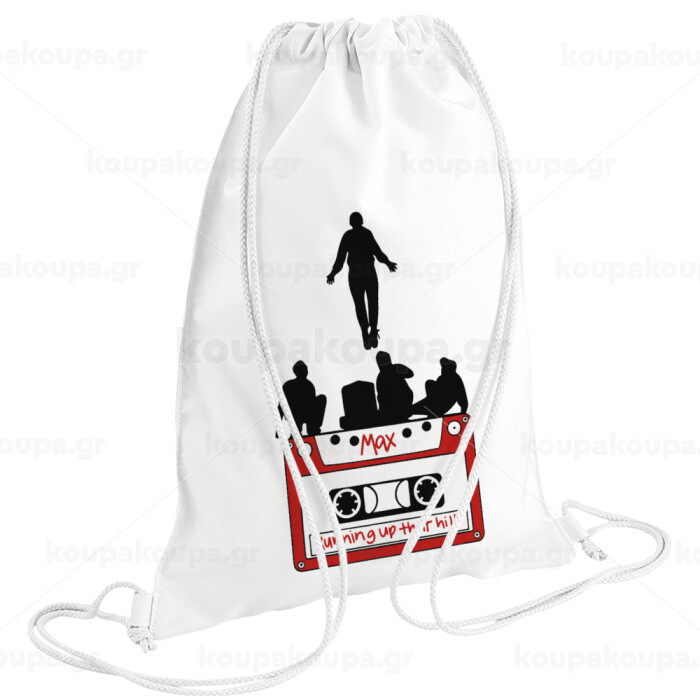 Running up that hill, Stranger Things, Backpack pouch GYMBAG white (28x40cm)