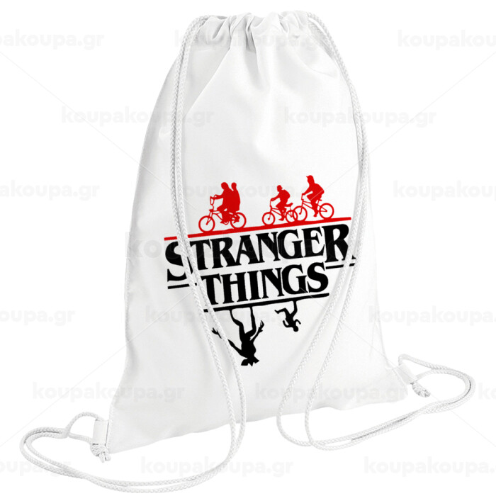 Stranger Things upside down, Backpack pouch GYMBAG white (28x40cm)