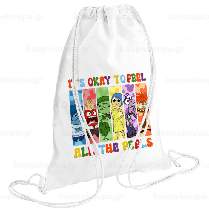 Inside Out It's Okay To Feel All The Feels , Backpack pouch GYMBAG white (28x40cm)