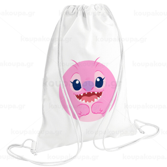 Lilo & Stitch Angel pink, Backpack pouch GYMBAG white (28x40cm)