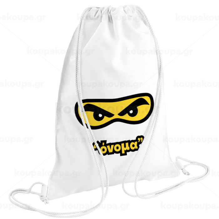 Ninja Eyes με όνομα, Backpack pouch GYMBAG white (28x40cm)