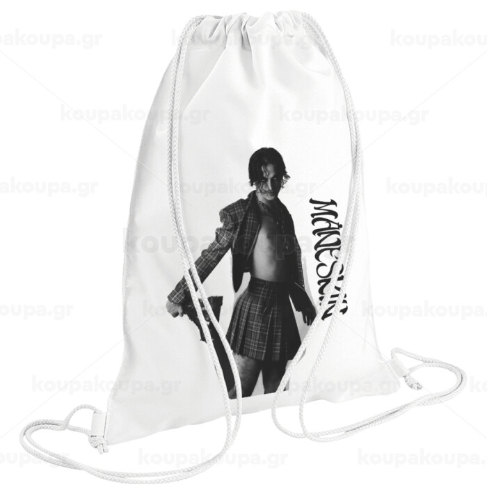 Maneskin Damiano David, Backpack pouch GYMBAG white (28x40cm)