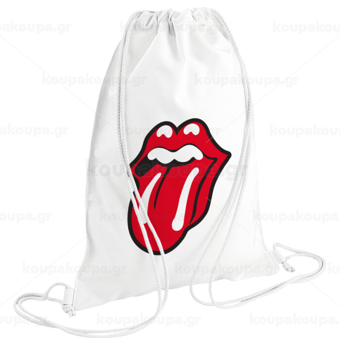 Rolling Stones Kiss, Backpack pouch GYMBAG white (28x40cm)