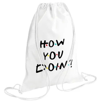 Friends How You Doin'?, Backpack pouch GYMBAG white (28x40cm)